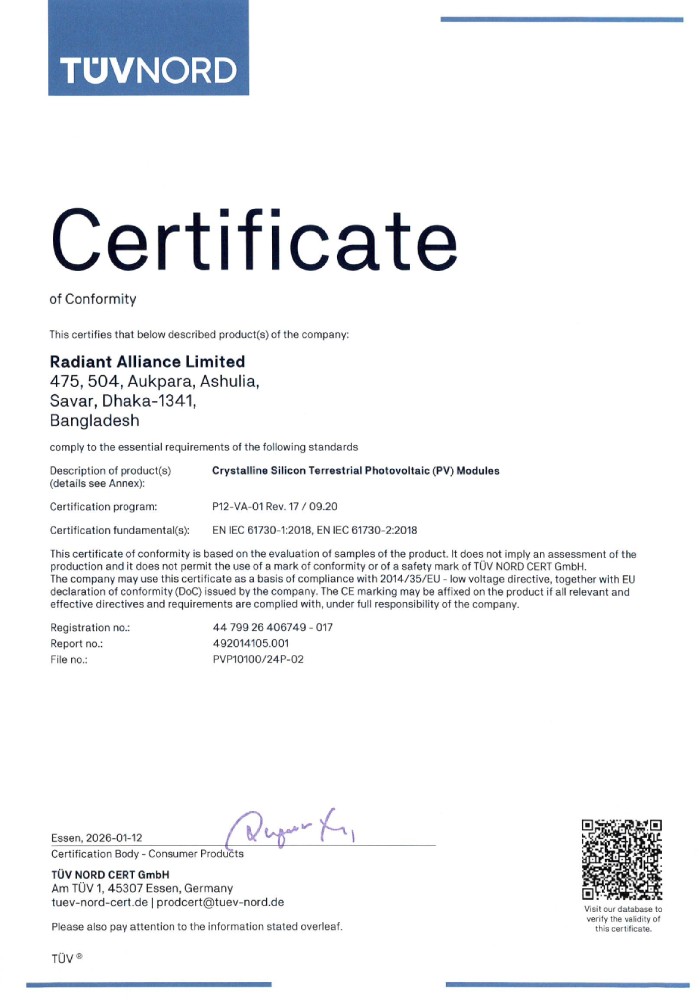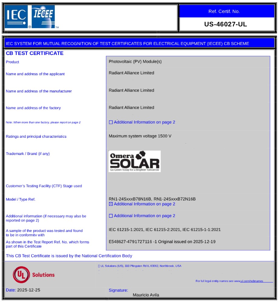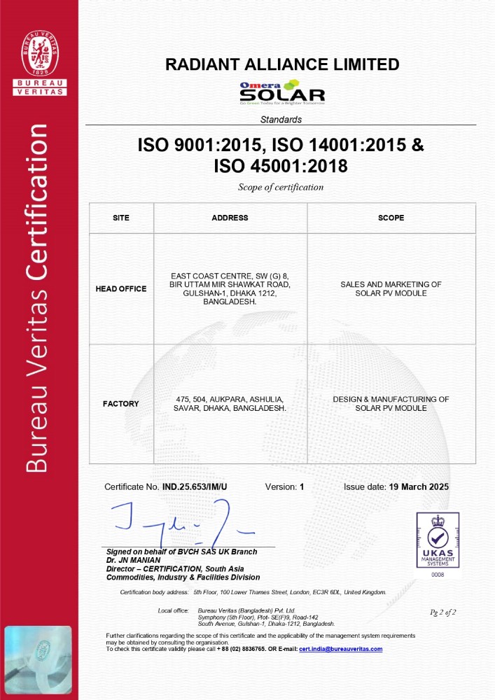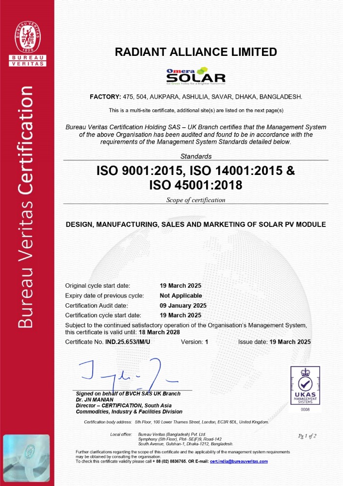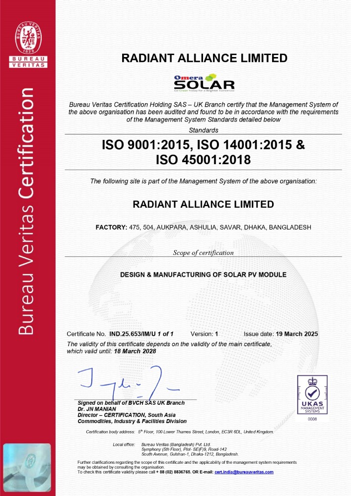 RAL represented by its own brand “Omera Solar”, started its Journey in October 2011, have done milestone upgradation to modern manufacturing technology introducing Automation & AI adaptation; the facility caters both Off-grid & On-grid Solar PV Module with an annual capacity of 600MW.
